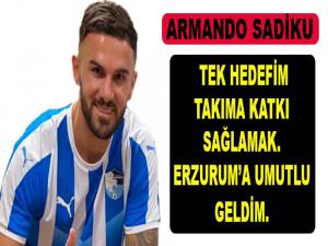 Armando Sadiku: "En büyük hedefim takımıma katkı sağlamak" BB Erzurumspor'un yeni transferi Armando Sadiku, iyi işler yapmak istediğini vurgulayarak, "Benim için en önemli olan şey takımımın başarısıdır. B.B Erzurumspor'un yeni transferi Armando Sadiku, iyi işler yapmak istediğini vurgulayarak, "Benim için en önemli olan şey takımımın başarısıdır. Yüzde yüz performansımla oynayıp takımım için iyi işler yapmak istiyorum" dedi.