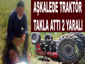 Erzurum'un Aşkale ilçesi Yeniköy Mahallesi'nde şarampole uçarak takla atan traktördeki 2 kişi yaralandı.