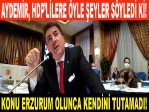 Milletvekili Aydemir, Bir nadan, bir millet cahili, bir tarih bilmez, dün Meclis Genel Kurulunda dadaşların ayranını kabartacak bir edepsizlik yapıyor. Ve Erzurum için Mustafa Kemal Atatürk'ün Erzurum Kongresiyle ilgili sözüm ona kayıt düşüyor. Nadanın önde gideni, dünya cahili diyor ki: Efendim, Mustafa Kemal, Erzurum'da ve Sivas'ta. diyor Kürdistan Kürdistan vilayetlerinde Erzurum ve Sivas'ta kongre yapmıştır. diyor. Ve bu adam Tarih öğretmeni. Yazık ya yazık! Bu kadar mı nadanlık? Bak, Erzurum tarihte hep Türk kentiydi, ilanihaye öyle olacak. Orada Kürt kardeşlerimizle asla ayrımız gayrımız yok. Senin zihnin lekelenmiş, senin zihnin bölücülükle dizayn edilmiş. Seni kınıyorum, seni lanetliyorum, Erzurumlular adına lanetliyorum. Sen bölücüsün diye konuştu.