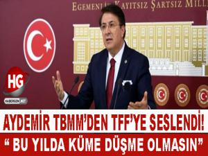 Geçen yıl birçok maçın seyircili oynandığını, bu yıl ise seyircili maç oynanmadığını dile getiren Aydemir, "Erzurumspor canla başla bir mücadele verdi, Süper Lig'e çıktı. Süper Lig'e çıktıktan sonra bir maçı dahi taraftar izleyemedi. Pandemi çok daha ağır şartlarda devam etmiyor mu? Öyleyse bu dönemde de küme düşme olmamalı. Başkent'in iki takımı birden küme düştü. Play-off sistemiyle 24 takımlı bir lig olabilir." önerisini getirdi.1'inci ve 2'inci Ligde de Düşme Kaldırılmalı Bu önerinin sadece küme düşen illerin teklif olmadığını, bütün Türkiye'de böyle bir istek olduğunu kaydeden Milletvekili Aydemir, birinci ve ikinci ligden de küme düşmenin olmaması gerektiğini söyledi. Aydemir, "Bu yıl için de küme düşme yeniden gözden geçirilmeli. Futbol Federasyonundan böyle bir istekte bulunuyoruz." dedi.