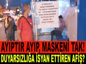 Erinkarlı, yazdığı afişi otobüs duraklarına yapıştırarak maske takmayanları uyardı.