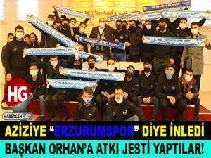 Grup liderleri Muhammet Dumlu, Kayhan Piyi ve Enes Aydemirle birlikte Aziziye Belediyesine çıkarma yapan Palandöken Kartalları, tezahüratlarıyla Dadaşkenti bile inletirken, coşku dolu atmosfer İbrahim Erkal şarkılarıyla renklendi. Aziziye Belediye Başkanı Orhana, üzerinde isminin yazılı olduğu Palandöken Kartalları atkısını hediye eden genç taraftarlar, tezahüratlarına nikah salonunda da devam etti.