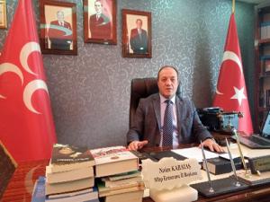 Milliyetçi Hareket Partisi (MHP) Erzurum İl Başkanı Naim Karataş mesajında şu ifadelere yer verdi:Şehitlik Müslüman Türk milletinin inancındaki en yüksek mertebedir. Şehitlik ulaşılacak en üst rütbe, cennetle mükâfatlandırılmış ulvi bir zirvedir. Yeri gönüllerde, tarifi Kur'an-ı Kerim'de yazılıdır. Şehitlerimiz vatan, millet ve mukaddesat yolunda canından vazgeçen insanlık şaheserleridir ve yüce bir gayeye hizmet amacıyla dünya nimetlerini elinin tersiyle itenlerin payesidir. Şehitlerimizin aziz hatıraları hepimize emanettir. Ülkülerimiz için katlandığımız çile ve meşakkatler sayısız ve benzersizdir. Biz millet sevdasının bedelini kanla ödedik. Biz Türk-İslam ülküsünü canımızla tescil ettik, Nice acıya, nice kayba, nice felakete inançlarımızla göğüs gerdik. Şehit verdik, fakat taviz vermedik. İç ve dış mihraklarla karanlık ilişki, sempati ve özentinin olmadığı, aydınlık ve tertemiz bir fikri alt yapıyla ülkü mücadelesinin hakkını verdiler. Şehitlerimiz, en zor şartlar altında bile, tereddüt etmeden ülkücülüğü akıl ve duyguda taşıyacak kadar olgunlaşmış kırılmaz bir iradeyle hepimizin yolunu aydınlattılar. Ülkücü mesuliyetin gereği olarak kişisel ihtiraslarını terk etmiş bir ruhi arınmışlıkla sonraki kuşaklara örnek oldular. Temelini Türk kültürü ve İslam inancının oluşturduğu, eşref-i mahlukat olan insana ve insaniyete saygıyı esas alan manevi olgunluğa ulaştılar. Ülkücü şehitlerimiz; yozlaştırıcı, yıpratıcı telkin ve tesirlere karşı, fikir istikrarını, hayat biçimini ve çalışma çizgisini ısrarla sürdürebilecek yalın, ilkeli ve düzgün bir özel hayatın numunesi oldular. Müslüman Türk milletinin şerefli mazisinde bir hilal uğruna nice güneşler batmıştır. Vatan ve millet yolunda nice fedakârlıklar, nice destansı mücadeleler yaşanmıştır. Her şeyden aziz bildiğimiz bu aziz topraklar şehit kanıyla sulanmıştır. Milli haysiyetimizin müdafaası şehit nefesiyle sağlanmıştır. Bağımsızlığımızın sembolü ay yıldız al bayrak rengini şehit kanından almıştır. Ülkücü şehitlerimiz üstün bir görev ve mensubiyet bilinciyle batıl hesaplara direnmiştir. Ülkücü şehitlerimiz, Zalime meydan okuyan cesaret, haine aman vermeyen asalet, vatana kol kanat geren hamiyet ve millete hizmetkârlıkla onurlanan haysiyettir. Bu vesileyle millet, devlet ve bayrak uğruna hayatlarını kaybetmiş kutlu dava yolcusu ülküdaşlarımızı, tüm aziz şehitlerimizi, merhum Başbuğumuz Alparslan Türkeş Bey'i bir kez daha minnet ve şükranla anıyor, Yüce Allah' tan hepsine rahmet diliyorum. Kabirleri nur, mekânları cennet, ruhları şad olsun.