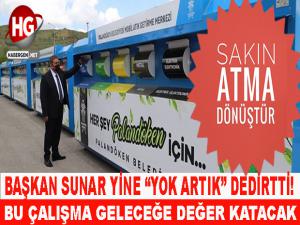 Cumhurbaşkanı Recep Tayyip Erdoğanın eşi Emine Erdoğan himayesinde yürütülen Sıfır Atık Projesinin Palandökende ciddi bir karşılık bulduğunun altını çizen Başkan Sunar, Özellikle Emine Erdoğan Hanımefendinin başlatmış olduğu çevre bilincine dönük faaliyetler ilçemizde de ciddi bir karşılık buldu. İlçe halkımız çevreci bir bilincine sahipti ve bu projelerle vatandaşlarımızın bilinci eyleme geçmiş oldu. Umuyorum ki hem projelerimiz hem de vatandaşlarımızı bilinci artarak devam edecek. Geçen yıl salgından önce ilçede bulunan ilkokul çağındaki çocuklarımıza çevre bilincini aşılamak adına dergiler, boyama kitapları dağıtmıştık. Bu gibi faaliyetlerimizin geri dönüşlerinden de son derece memnunuz. Yine her toplantımızda ilçe halkımızın benzer taleplerini görmekteyiz. Palandöken Belediyesi olarak elimizden geldiğince bu taleplere olumlu karşılık vermenin gayreti içerisindeyiz. Geri dönüşüm atık getirme merkezlerini 5 merkez mahallede 20 muhtelif noktaya bırakacağız. Bu noktalar önceden tespit edildi. Özellikle bu noktalar atığın yoğun olduğu, geri dönüşüme de ihtiyaç duyulan alanlar, meskenlerin yoğun olduğu alanlar, meskenlerin ortak kesişen alanları ve ticaret merkezlerinin kesif bulunduğu sahalar. Buralarda da yine umuyoruz ki bu geri dönüşüme katkı sağlayacağız. Faaliyete geçireceğimiz bu projemiz şimdiden İlçe halkımıza hayırlı olsun. ifadelerine yer verdi.
