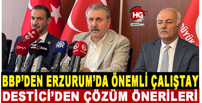 BBP Genel Başkanı Mustafa Destici, parti olarak her ay bir bölgede çalıştay gerçekleştirdiklerini belirterek, "Önce Karadeniz Bölge Çalıştayımızı Trabzon'da gerçekleştirdik. Geçtiğimiz ay İç Anadolu Bölge Çalıştayımızı Konya'da gerçekleştirdik. Ve bu ayda Erzurum'dayız. Doğu Anadolu Bölge Çalıştayımız için sabah bölümünde çalıştığımızın açılışını gerçekleştirdik. Hem Erzurum'u hem bu bölgede yer alan 14 vilayetimizin ekonomik, sosyal, coğrafi durumlarını, şartlarını avantajlarını, dezavantajlarını değerlendirdik. Öğleden sonraki bölümde de iki oturumda bölgemizin ve ülkemizdeki dünyadaki son gelişmeleri değerlendirdik. İlk bölümde Erzurum'dan konuşmacılara yer verdik. Çözüm önerileri noktasında Büyük Birlik Partisi'nin Erzurum'u ve Güneydoğu'nun problemlerinin çözümü taleplerinin karşılanması noktasında biz Büyük Birlik Partisi olarak çok hazırlıklıyız. Bir kere öncelikle bir genel bakış gerçekleştirdik. Bir hazırlığımız var. Daha sonra bunun sebeplerini ortaya çıkardık. Yani bölgenin, bölge niye en yoğun işsizliğe sahip? Eğitimde efendim pek çok alanda niye ülkemizin diğer bölgeleriyle aynı değil de daha geride? Bunun sebepleri var. İşte başta güvenlik olmak üzere insanların doğduğu yerde doyamaması gibi coğrafi şartlar, pek çok nokta var, avantajları var, dezavantajları var. Bunların hepsini tespit ettikten sonra Büyük Birlik Partisi olarak biz çözüm ve önerilerimizi de dün çok açık bir şekilde paylaştık" diye konuştu.