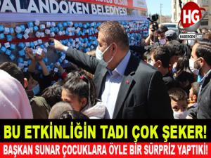 Covid-19 münasebetiyle 23 Nisan coşkusunu evlerde yaşayan çocuklara sürpriz yapan Başkan Sunar, Aslında bugün bambaşka bir sürpriz yapmak istemiştik. İlçemizdeki billboardlara lolipopları tutturarak sokağa çıkan çocuklarımıza küçük bir sürpriz yapacaktık. Covid 19 tedbirleri kapsamında alınan kısıtlama kararı nedeniyle olmadı. Durum böyle olunca madem çocuklarımız dışarıya çıkamıyor, o halde biz çocuklarımıza gidip bayram coşkularını paylaşalım dedik. Muradımız bayram havasını yaşatmak. İnşallah başarılı olmuşuzdur diye konuştu