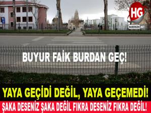 Erzurum'da bulunan bir yaya geçidinin başı var sonu yok. Yolun karşısına geçmek için yaya geçidinde bulunan çizgileri kullanmak isteyen vatandaşlar, kendilerini demir çitlerle çevirili çimlerde buluyorlar. İlginç tasarımlı yaya geçidini görenler ise şaşkınlıklarını gizleyemiyor. Erzurum'un Yakutiye ilçesine bağlı Yunus Emre Mahallesinde bulunan Fatih Sultan Mehmet Bulvarında eşine çok az rastlanacak yaya geçidi görenleri hayrete düşürüyor. Yolun karşısına geçmek isteyen vatandaşlar yaya geçidindeki çizgileri takip edince çitlerle çevrili çimenlere ulaşıyor.