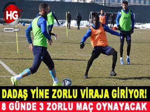 Teknik direktör Erkan Sözeri yönetiminde Kocaeli deplasmanına hazırlanan mavi beyazlı futbolcuları 8 günde üç zorlu karşılaşma bekliyor. 10 Aralık Cuma Akşamı Kocaelispor ile deplasmanda puan mücadelesine çıkacak olan Erzurumspor bu maçın ardından 14 aralık salı günü Kazım Karabekir stadında Gençlerbirliğini ağırlayacak. Dadaşların temsilcisi üç gün sonra ise Ankara deplasmanına gidecek ve Ankara Keçiörengücü takımına konuk olacak. Ligin son hafta müsabakasında ise Denizlispor Erzurum deplasmanına gelecek.
