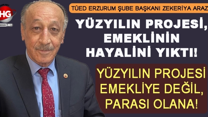 Cumhuriyet tarihinin en büyük sosyal konut hamlesi olarak duyurulan “Yüzyılın Konut Projesi”, emekliler arasında hayal kırıklığı yarattı. 10 Kasım’da başlayacak başvurular öncesinde Türkiye Emekliler Derneği (TÜED) Erzurum Şube Başkanı Zekeriya Araz,projeye ilişkin çarpıcı değerlendirmelerde bulundu.