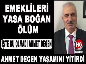 Erzurum Büyükşehir Belediyesinden emekli olduktan sonra Türkiye Emekliler Derneği Erzurum Şube yönetiminde yer alan Ahmet Degen, yaklaşık 8 yıldır Derneğin başkanlığını yapıyordu. Özellikle Emeklilere konut projesinde çok büyük çalışmalar sergileyen ve Erzurum'da 1000'in üzerinde emekliyi ev sahibi yaparak gönüllerde taht kuran Ahmet Degen, yaklaşık altı aydır kan pırtılaşması teşhisi ile hastanede tedavi altına alınmıştı.