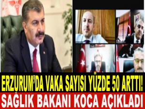 Tokat, Tekirdağ, Adana, Mersin ve Sakarya'da iki haftada vakaların yüzde 100 arttığını belirten Bakan Koca, "Erzurum'da ise %50 artış gösterdi. Tedbirlerden verdiğimiz her taviz, salgınla mücadeleyi zorlaştırıyor. Tedbirin olmadığı yerde tehdit devam ediyor" ifadelerini kullandı.
