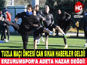 Ankara Keçiörengücü maçının ardından İstanbul'a geçen ve Tuzla maçının hazırlıklarını Riva'da sürdüren Erzurumspor bugün son çalışmayı yaparak dinlenmeye çekildi ve maç saatini beklemeye başladı. Eseyurt necmi Kadıoğlu stadında oynanacak ve Bahattin Şimşek'in orda hakemliğini yapacağı maç öncesi teknik direktör Erkan Sözeri oyuncuları ile sık sık toplantılar yaparak Tuzla maçından mutlaka galip gelmeleri noktasında uyarılarda bulundu.