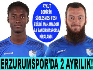 Büyükşehir Belediye Erzurumspor'da transferin son gününde iki futbolcu ile yollar ayrıldı. Teknik direktör Mehmet Özdilek'in yeni sezonda kadroda düşünmediği stoper Aykut Demir ile sözleşme karşılıklı olarak fesih edilirken, genç yetenek Mahamadou Ba ise 1. lig ekiplerinden Bandırmaspor'a kiralandı.