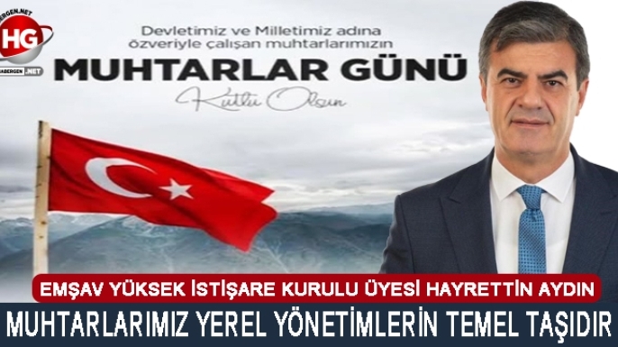 Emniyet Teşkilatı Vazife Malulü ve Şehit Aileleri Vakfı (EMŞAV) Yüksek İstişare Kuruyu Üyesi, spor adamı ve siyasetçi Hayrettin Aydın, 19 Ekim Muhtarlar Günü dolayısıyla bir kutlama mesajı yayımladı.