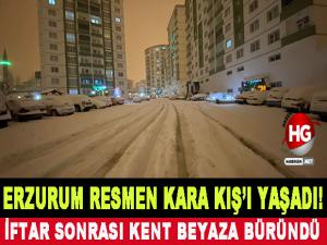 İftar saati ile birlikte başlayan kar yağışı ilerleyen saatlerde yoğunluğunu artırınca kent merkezi beyaza büründü.