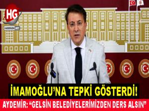 İstanbul Büyükşehir Belediye Başkanına tepki gösteren Milletvekili İbrahim Aydemir, 'Erzurum'a gelin, Büyükşehir Belediyemizden, ilçe belediyelerimizden ders alın, örnekleri görün ve İstanbul'da da hayata yansıtın. ' dedi Erzurum Büyükşehir TBMM Gündemindeydi