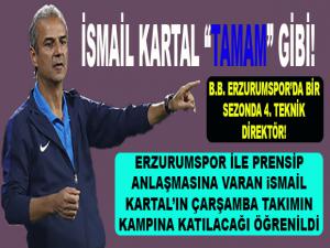 Mavi beyazlı takıma teknik direktör dayanmıyor. Erzurumspor'da Mesut Bakkal ile yolların ayrılmasının ardından İsmail Kartal ile prensip anlaşmasına varıldı.
