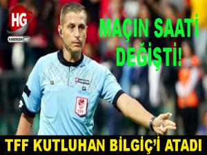 Pazartesi günü oynanacak olan B.B Erzurumspor Bursaspor karşılaşmanın saatinde değişikliğe gidilirken, müsabakaya Kutluhan Bilgiç görevlendirildi.