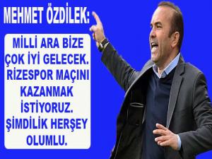 Milli aranın geç gelen oyunculara iyi geleceğini kaydeden Özdilek, Oltan'ın sakatlığı devam ediyor. Sadiku ve Juju bugün bizimle beraber çalışmaya başladı. Ama geç kalan futbolcular var milli aranın bu oyunculara daha iyi geleceğini düşünüyorum. Bunların dışında bir sıkıntımız yok ama hafta sonuna kadar ne olur bilemiyorum. Bizim açımızdan şuan her şey olumlu gibi görünüyor açıklamalarında bulundu.