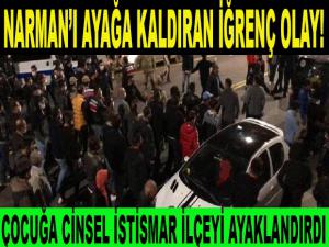 Erzurum'un Narman ilçesinde bir kişinin, 11 yaşındaki bir erkek çocuğunu ağaca bağlayarak cinsel istismarda bulunmaya çalıştığının öğrenilmesi üzerine ilçe ayaklandı. Polisin güçlükle yatıştırdığı olay sonrası şüpheli Erzurum merkeze gönderildi.
