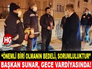 Özellikle gece saatlerinde Başkan Sunar'ı karşılarında gören ekipler ise gördükleri yakın ilgi ve alakadan dolayı çalışmalarını daha moralli bir şekilde yapıyorlar.