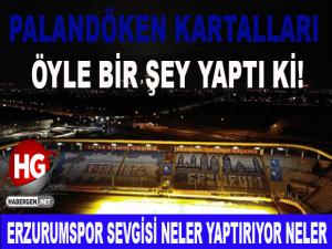 Süper ligde pazar günü Trabzonspor'u ağırlayacak olan Büyükşehir Belediye Erzurumspor bu maçın hazırlıklarını sürdürürken, Palandöken Kartalları taraftar gurubu da takımları için müthiş bir çalışma yaptı. Palandöken kartalları gurup kurucuları Muhammed Dumlu, Kayhan Piyi, Enes Aydemir ve Fikri can Yapan ile grup üyeleri, hem 12 Mart Erzurum'un düşman işgalinden kurtuluşunun yıl dönümü hem de Pazar günü oynanacak olan Trabzonspor maçı için özel bir koreografi hazırladı. Maraton tribününde yapılan çalışmada çifte minareli medresenin görseli müthiş bir emek sarf edilerek hazırlandı. Erzurumspor'a iyi ünde ve kötü günde her zaman destek veren taraftar grubu olarak dikkat çeken Palandöken Kartallarının yaptığı bu güzel çalışma camianın da büyük beğenisini kazandı.