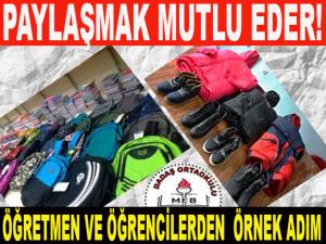 Erzurum Yakutiye İlçe Milli Eğitim Müdürlüğüne bağlı Dadaş Ortaokulu öğretmen ve yöneticileri, 2020-2021 Eğitim Öğretim Yılı etkinlikleri kapsamında "Paylaşmak Mutlu Eder" sloganıyla ihtiyaç sahibi bütün öğrencileri için bot, mont ve kırtasiye desteğinde bulundular.