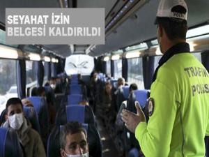 Genelgeye göre, şehirler arası toplu ulaşım araçları ile yapılacak seyahatlerde, seyahat izin belgesi alma zorunluluğu yürürlükten kaldırıldı.