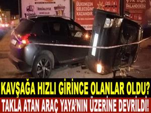 İki otomobil kavşakta çarpıştı, takla atan araç kaldırımda yürüyen yayanın üzerine devrildi