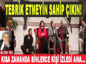 Bakın Aziziye Belediyesi bu oyunu kendi ilçesinde sahneletti ve müthiş bir ilgi gördü. diğer İlçelerimizde de bu oyunun bir şekilde sahnelenerek hem sanatçılara değer ve destek verilmesi hem de ilçelerdeki vatandaşların da tiyatro özleminin giderilmesinin çok önemli olduğunu vurguluyorum...