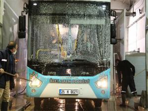 Erzurum'da toplu taşıma araçları dezenfekte edildi