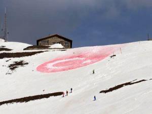 Palandöken'in karlı zirvesi Türk bayrağına boyandı