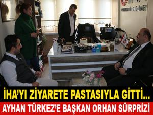 Aziziye Belediye Başkanı Muhammed Cevdet Orhan Haber ajanslarına yönelik gerçekleştirdiği ziyaretler esnasında İHA Bölge Müdürü Ayhan Türkez'in doğum gününde unutmadı.